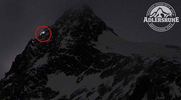 Hình ảnh webcam cho thấy đèn khẩn cấp của Kerstin Gurtner và Thomas Plamberger trong quá trình họ leo lên đỉnh Grossglockner, lúc 18h ngày 18/1. |