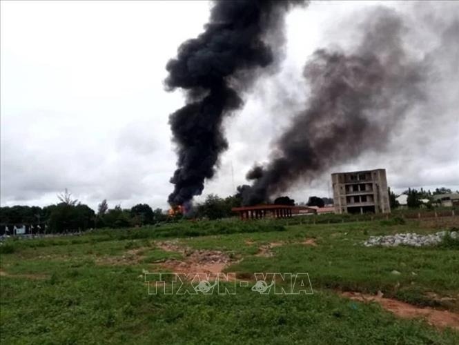 Vụ nổ tại trạm bơm ga ở bang Nasarawa, miền bắc Nigeria trước đó. Ảnh: Leadership/TTXVN |
