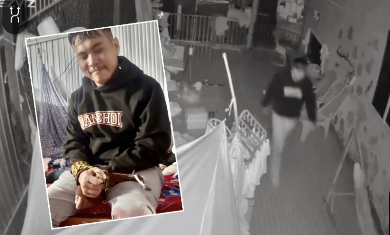 Đối tượng Tài và hiện trường vụ án mạng. |