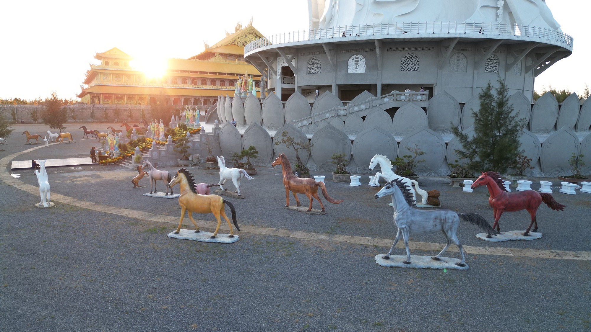 Bên cạnh tượng Quan Âm là chánh điện rộng gần 12.000m², cao tối đa khoảng 51m. |