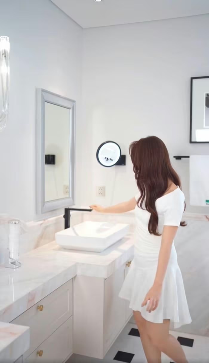 Phòng tắm hiện đại với gam màu trắng sang trọng. Ảnh chụp màn hình |