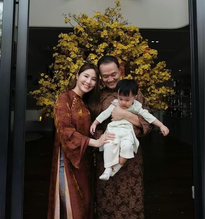 Diễm My 9X bên chồng và con trai mùng 1 Tết. Ảnh: Facebook |