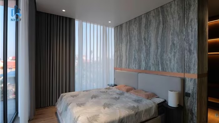 Tầng 2 gồm 3 phòng ngủ, trong đó, phòng ngủ master được bố trí ở vị trí đẹp nhất. Ảnh chụp màn hình |