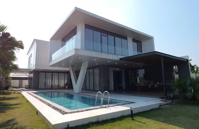 Phía sau nhà còn có một hồ bơi lớn, mang đến cảm giác như ở gần biển. Ảnh chụp màn hình |