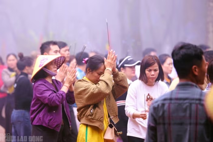 Người dân, du khách dâng hương, dâng lễ tại khu vực huyện đạo thiêng để cầu sức khỏe, bình an |