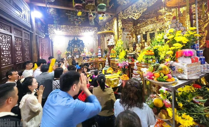 Người dân dâng lễ, cầu khấn trong đền Am Tiên |