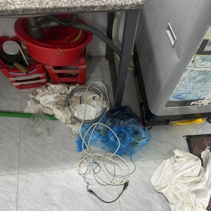 Kiểm tra hiện trường đã được dọn dẹp sơ sài vẫn còn vương mùi khét và những vết máu chưa xóa sạch, các cán bộ kỹ thuật hình sự phát hiện trong chiếc máy giặt ở góc nhà có một đoạn dây điện dài khoảng 2 m đã bị tuốt bỏ lớp vỏ nhựa bảo vệ ở một đầu.
