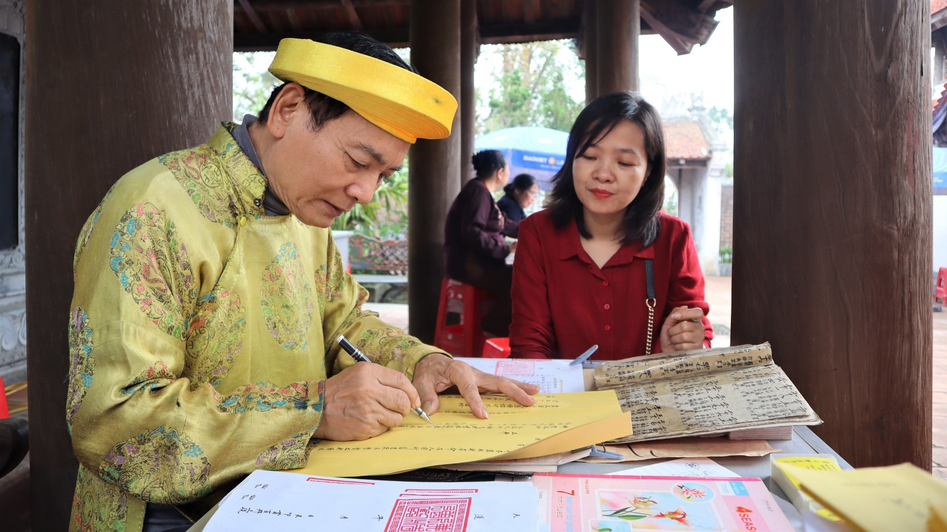 Người dân, du khách xin sớ cầu an đầu năm. |