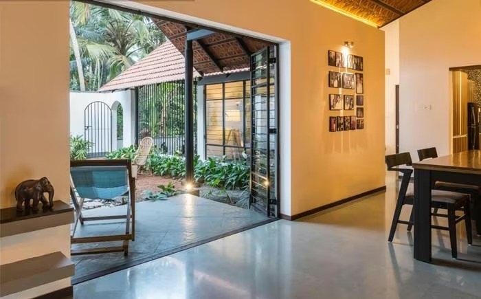 Nằm tại Kerala (Ấn Độ), ngôi nhà trông giống như một tầng từ bên ngoài, nhưng thực chất công trình bao gồm một nhóm các tòa nhà một và hai tầng được kết nối với nhau. Ảnh: Turtle Arts Photography |