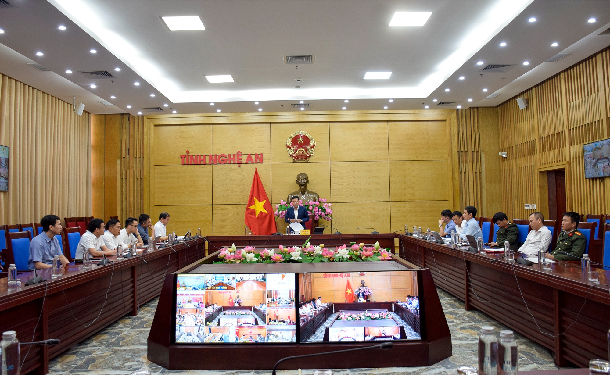 Tham dự tại điểm cầu tỉnh Nghệ An có đồng chí Hoàng Phú Hiền – Tỉnh ủy viên, Phó Chủ tịch UBND tỉnh và lãnh đạo các Sở, ngành.