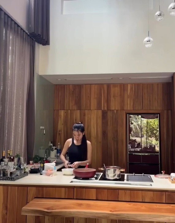 Căn bếp của cả hai được trang trí với gỗ tự nhiên, thoáng đãng, với thiết kế thông tầng, ngập tràn ánh sáng |