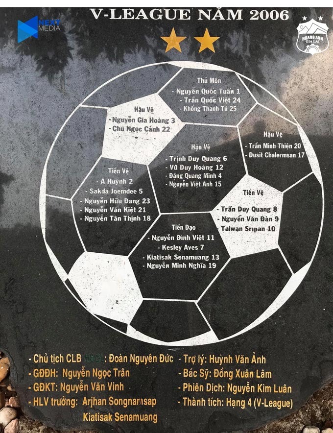 Bia đá ghi danh của HAGL có tên Nguyễn Minh Nghĩa mang áo số 16 |