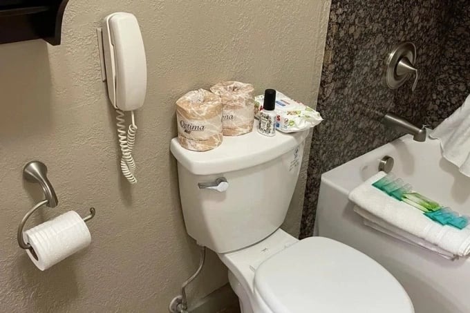 Điện thoại trong nhà vệ sinh khách sạn. Ảnh: Reddit |