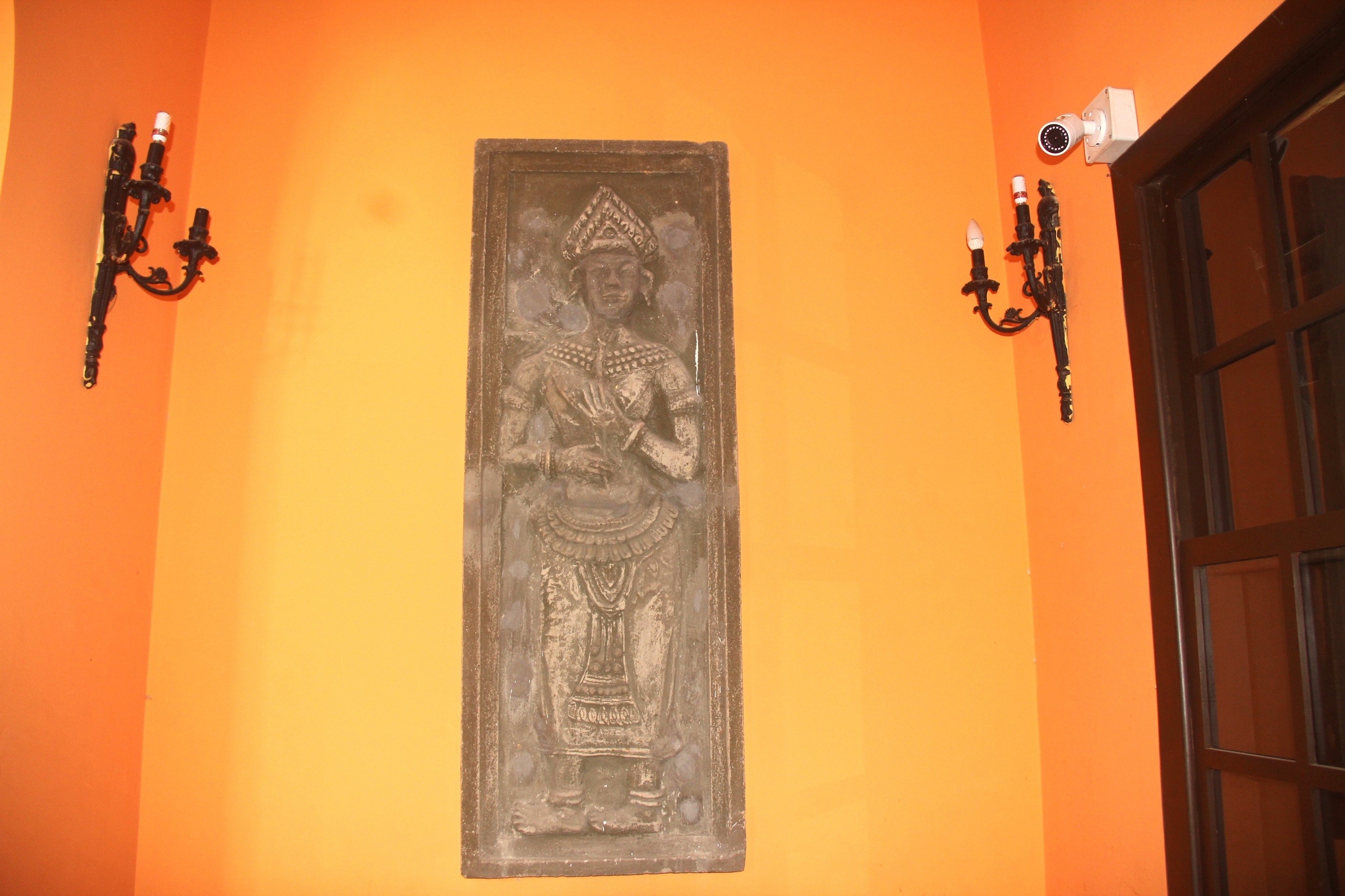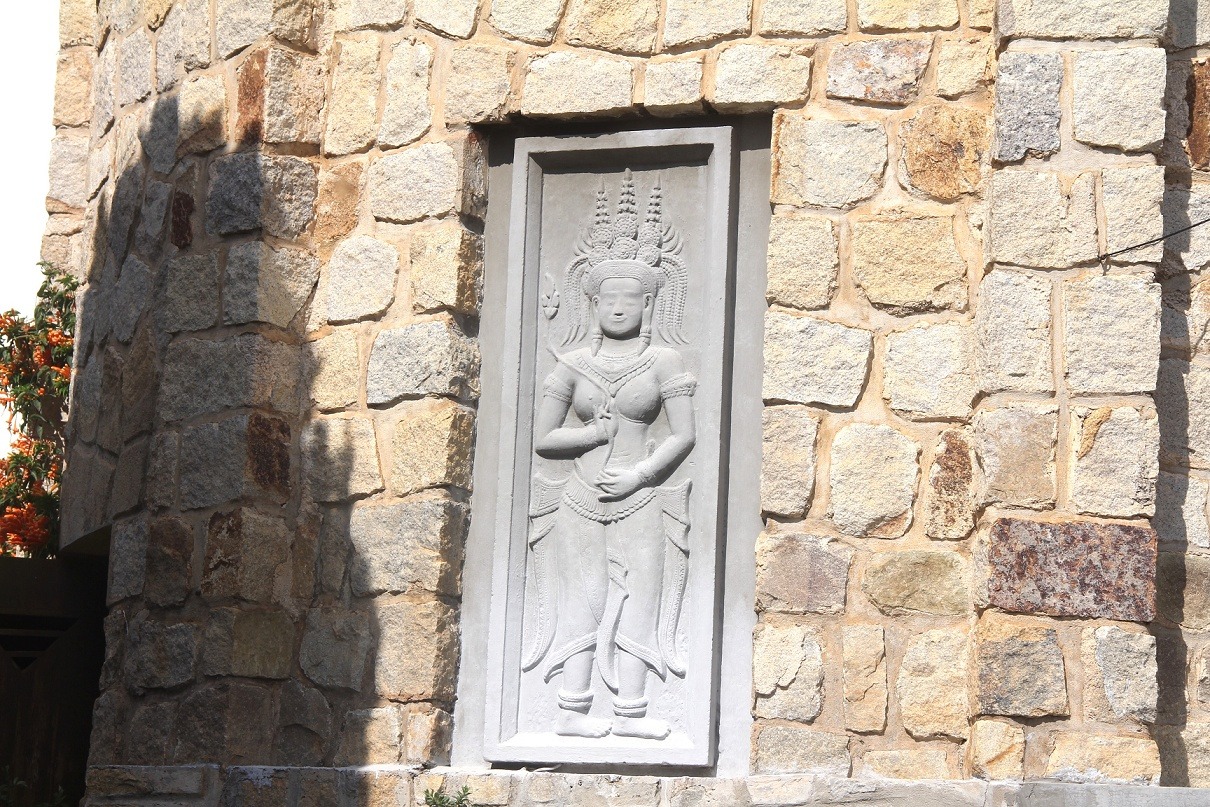 Các phù điêu văn hóa Chăm đang trang trí trên những bức tường của ngôi biệt thự này. |