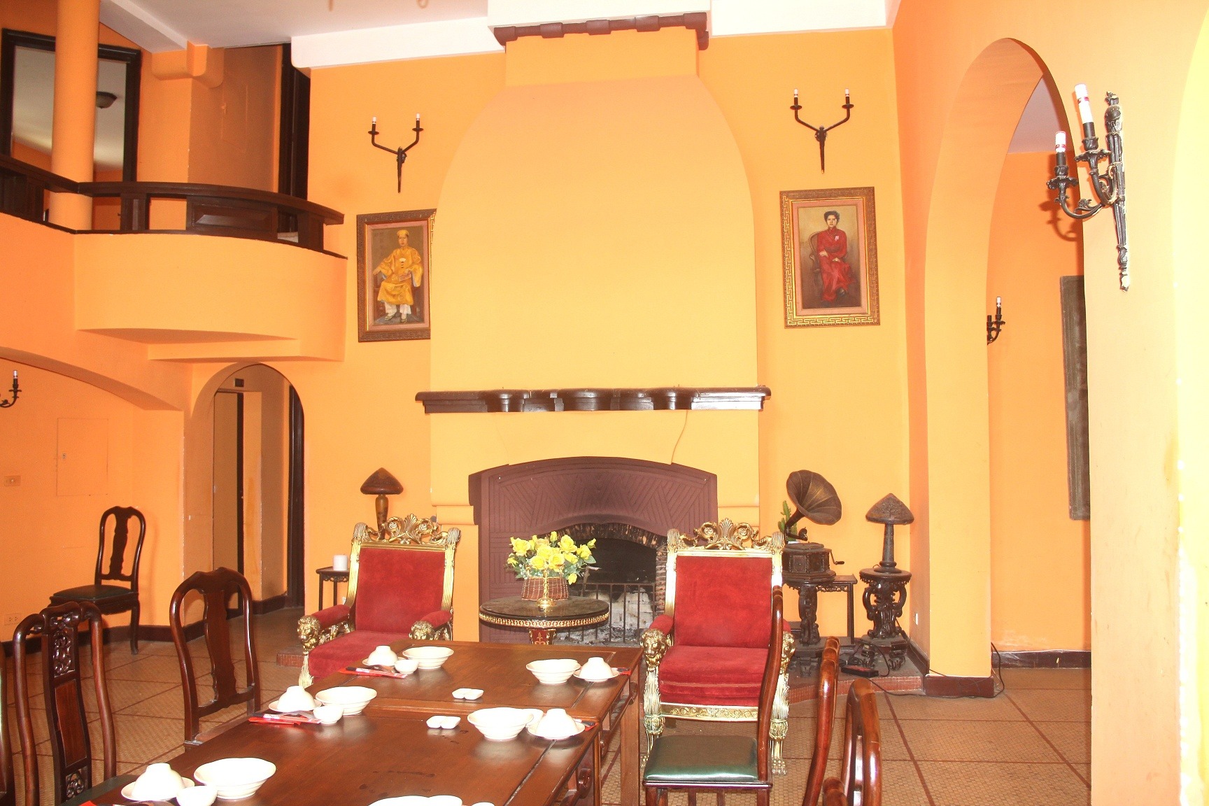 Bên trong phòng khách của biệt thự, một lò sưởi được thiết kế theo phong cách phương Tây. |
