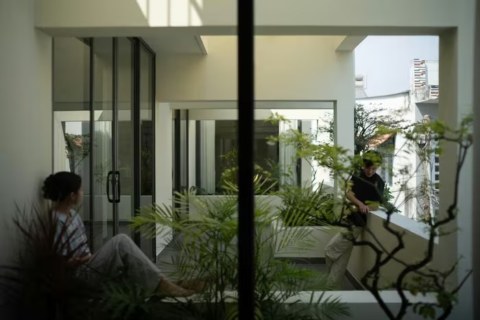 Giếng trời không chỉ để lấy sáng, mà trở thành cấu trúc bẫy gió, bắt nắng, điều tiết vi khí hậu, giữ cho không gian luôn mát lành và dễ chịu. Ảnh: Quang Dam |