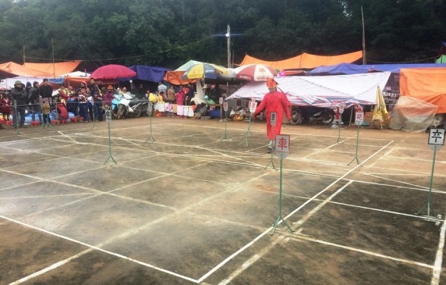 Trò chơi cờ người trong lễ hội Đền Đức Hoàng. |