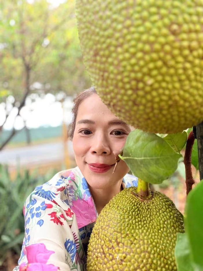 Mỹ Lệ tỏ ra phấn khích khi các loại cây ăn quả trong vườn đều phát triển tốt. Ảnh: FB Hoàng Thị Mỹ Lệ |