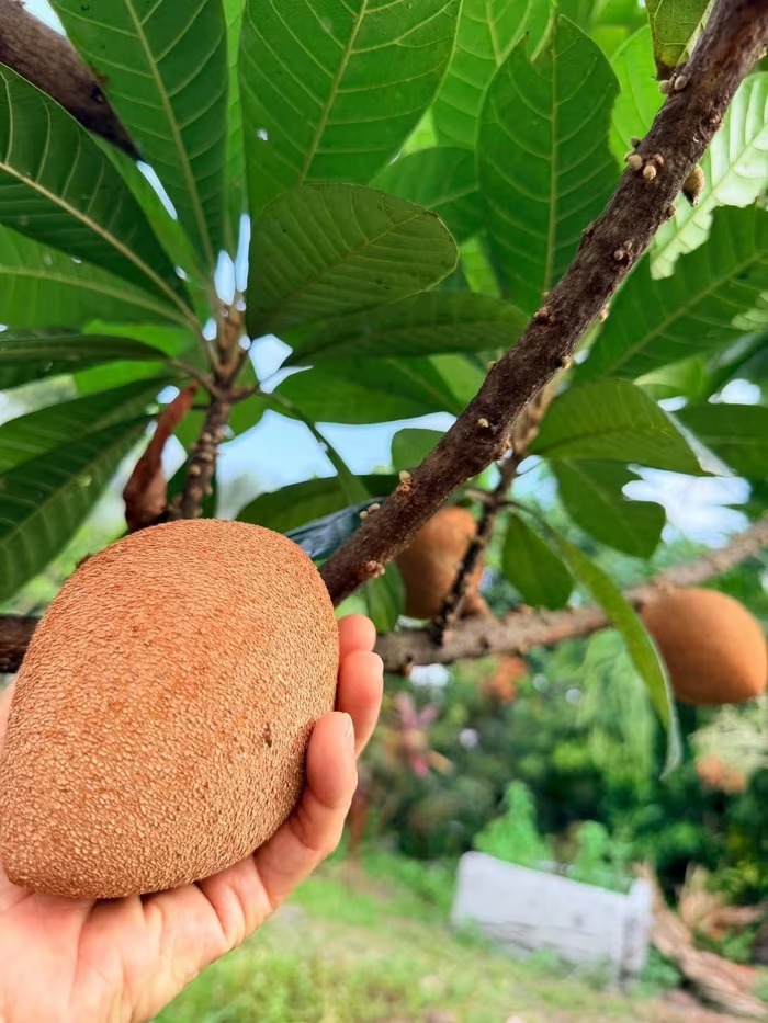 Trái hồng xiêm kích thước lớn, hứa hẹn mùa vụ bội thu. Ảnh: FB Hoàng Thị Mỹ Lệ |