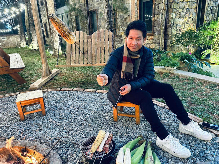 Biệt thự còn có khu vực ăn uống ngoài trời và góc giải trí với tầm nhìn hướng rừng thông. Gia đình Trọng Tấn thường tổ chức những bữa tiệc nướng, cùng ca hát và họp mặt tại đây. |
