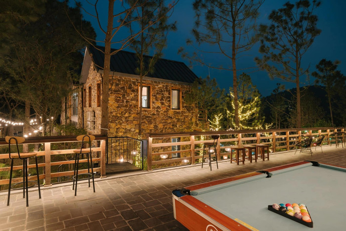 Tầng trên của khu vực bếp là không gian giải trí, nơi mọi người có thể chơi bi-a hoặc tham gia các hoạt động ngoài trời với tầm nhìn hướng rừng thông cực “chill”. |