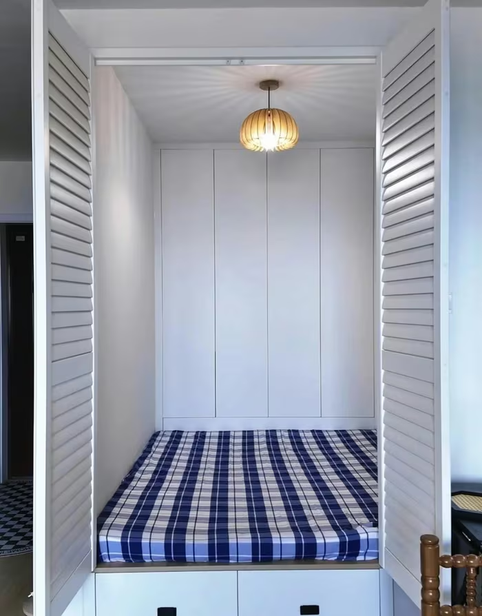 Phòng ngủ được thiết kế như một chiếc tủ, dạng kín. Ảnh: Xiaohongshu |
