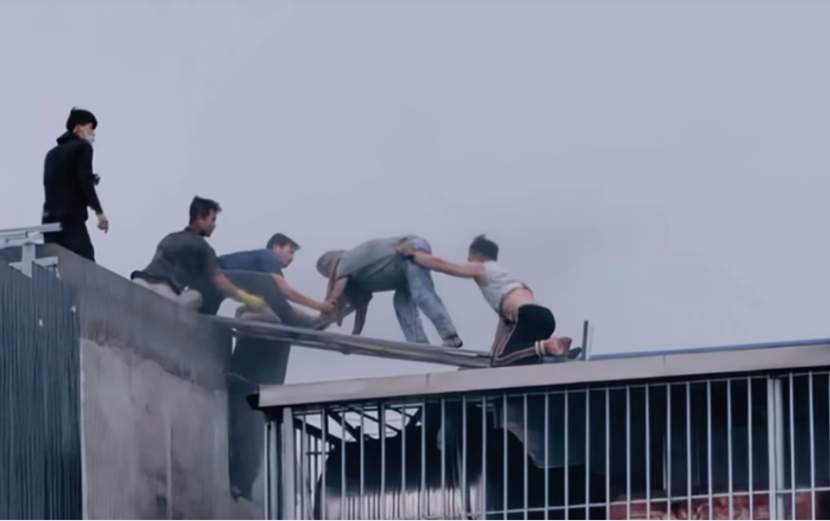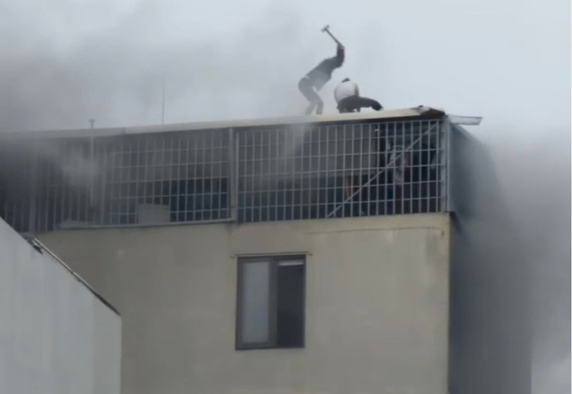 Hình ảnh hai "người hùng" đập mái tôn, mở lối thoát cứu các nạn nhân vụ cháy |