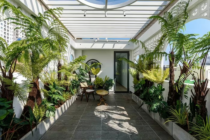 Mảng xanh được đặt trên sân thượng. Ảnh: LonTon Studio |