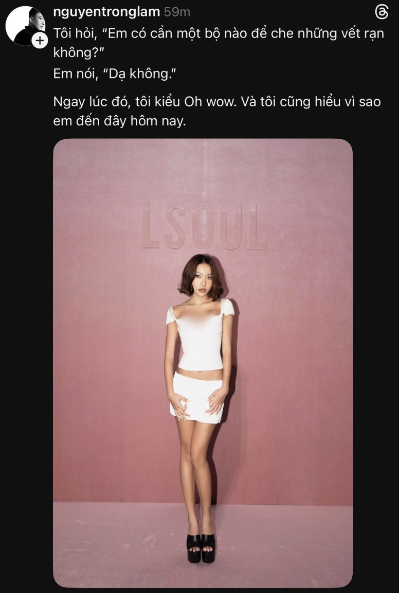 Sáng ngày 29/3, trên trang cá nhân, CEO - NTK Nguyễn Trọng Lâm từ thương hiệu LSOUL đăng tải bức ảnh đơn của Huyền 2K4 tại sự kiện, đây cũng là người nổi tiếng duy nhất mà anh đăng tải hình ảnh riêng hậu show diễn. Đi kèm với bức ảnh là câu chuyện hậu trường liên quan đến outfit của Huyền 2K4 ngày hôm ấy.