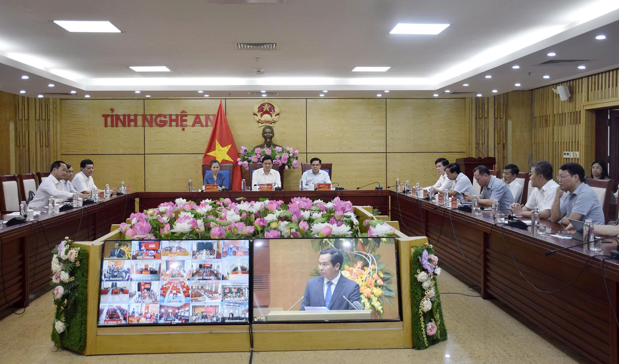 Tại điểm cầu Nghệ An, tham dự Hội nghị có các đồng chí: Phó Bí thư Thường trực Tỉnh ủy, Chủ tịch HĐND tỉnh Hoàng Nghĩa Hiếu – Phó Trưởng Ban thường trực Ban Chỉ đạo bầu cử, Chủ tịch Ủy ban Bầu cử tỉnh; Chủ tịch UBND tỉnh Võ Trọng Hải - Phó trưởng Ban Chỉ đạo bầu cử, Phó Chủ tịch Ủy ban bầu cử tỉnh; Phó Bí thư Tỉnh ủy, Chủ tịch Ủy ban MTTQ tỉnh Võ Thị Minh Sinh - Phó trưởng Ban Chỉ đạo bầu cử, Phó Chủ tịch Ủy ban bầu cử tỉnh; các thành viên Ban Chỉ đạo bầu cử, Ủy ban Bầu cử tỉnh...