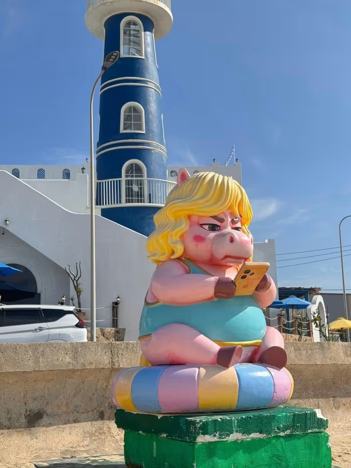 Linh vật ngựa mặt cọc, cầm iPhone 17 'đi lạc' ra bãi biển Nhơn Lý