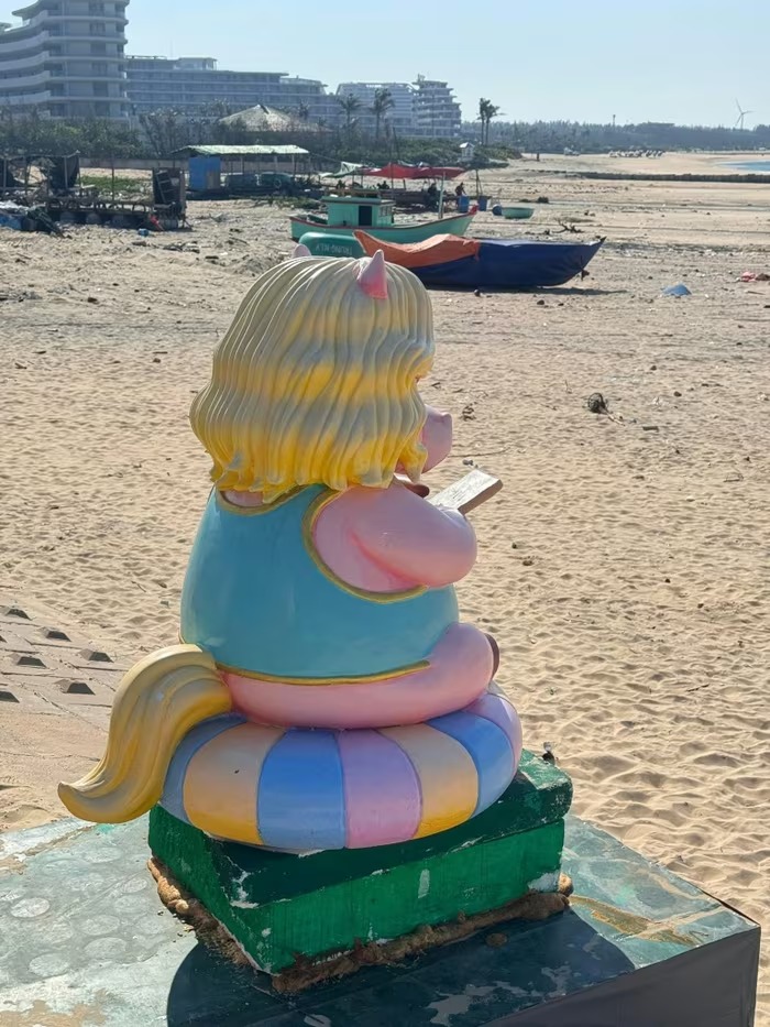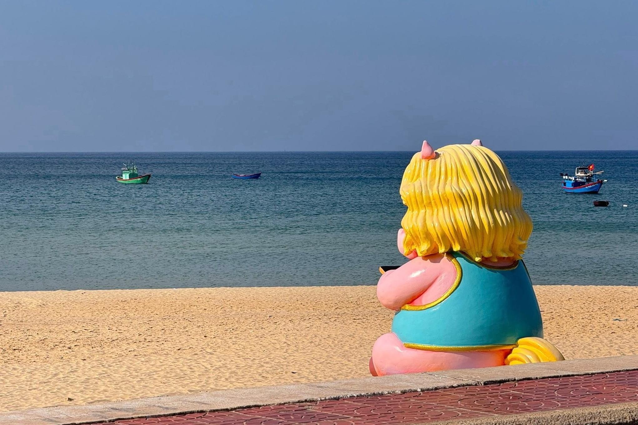 Linh vật hướng ra Bãi Bấc - một trong những bãi biển đẹp tại Nhơn Lý, ngày 29/3. Ảnh: Pháp Văn. |