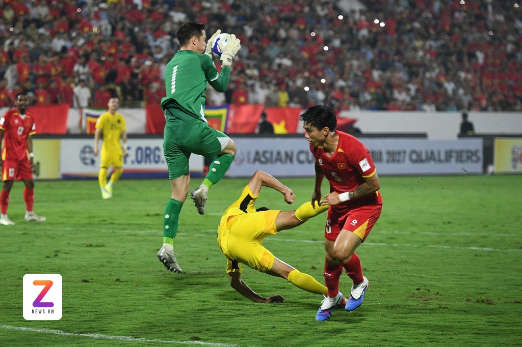 Tối 31/3, đội tuyển Việt Nam đánh bại Malaysia 3-1 ở trận đấu thuộc vòng loại Asian Cup 2027 trên sân Thiên Trường (Ninh Bình). Người gác đền cho đội quân áo đỏ là Nguyễn Filip. Đây là trận đấu không quá căng thẳng với thủ thành mang áo số 1 khi Malaysia chỉ gây một chút sóng gió trước khung gỗ, sau đó bị đẩy lùi sâu về phần sân nhà trong suốt hiệp 1. Ở hiệp 2, từ một tình huống đá phạt penalty của "Hổ Malay", Nguyễn Filip mới phải vòng lưới nhặt bóng. Màn trình diễn tại Thiên Trường có thể xem là lời khẳng định cho vị trí của thủ môn này. Ảnh: Đinh Hà. |
