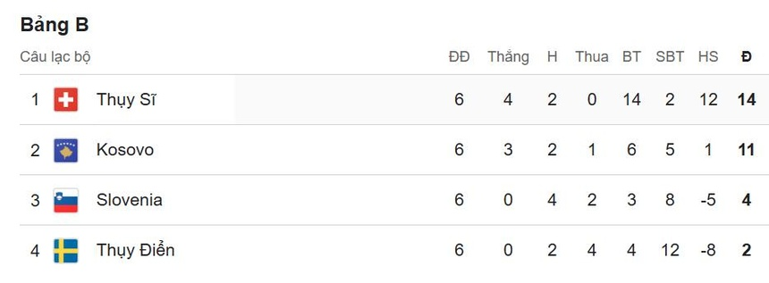 Tuyển Thụy Điển tạo nên một trong những câu chuyện khó tin nhất vòng loại World Cup 2026. Thành tích vòng bảng của đội bóng Bắc Âu là cực kỳ nghèo nàn với 0 chiến thắng, 2 trận hòa, 6 thất bại. Họ ghi vỏn vẹn 4 bàn và để lọt lưới tới 12 lần, qua đó xếp cuối bảng.