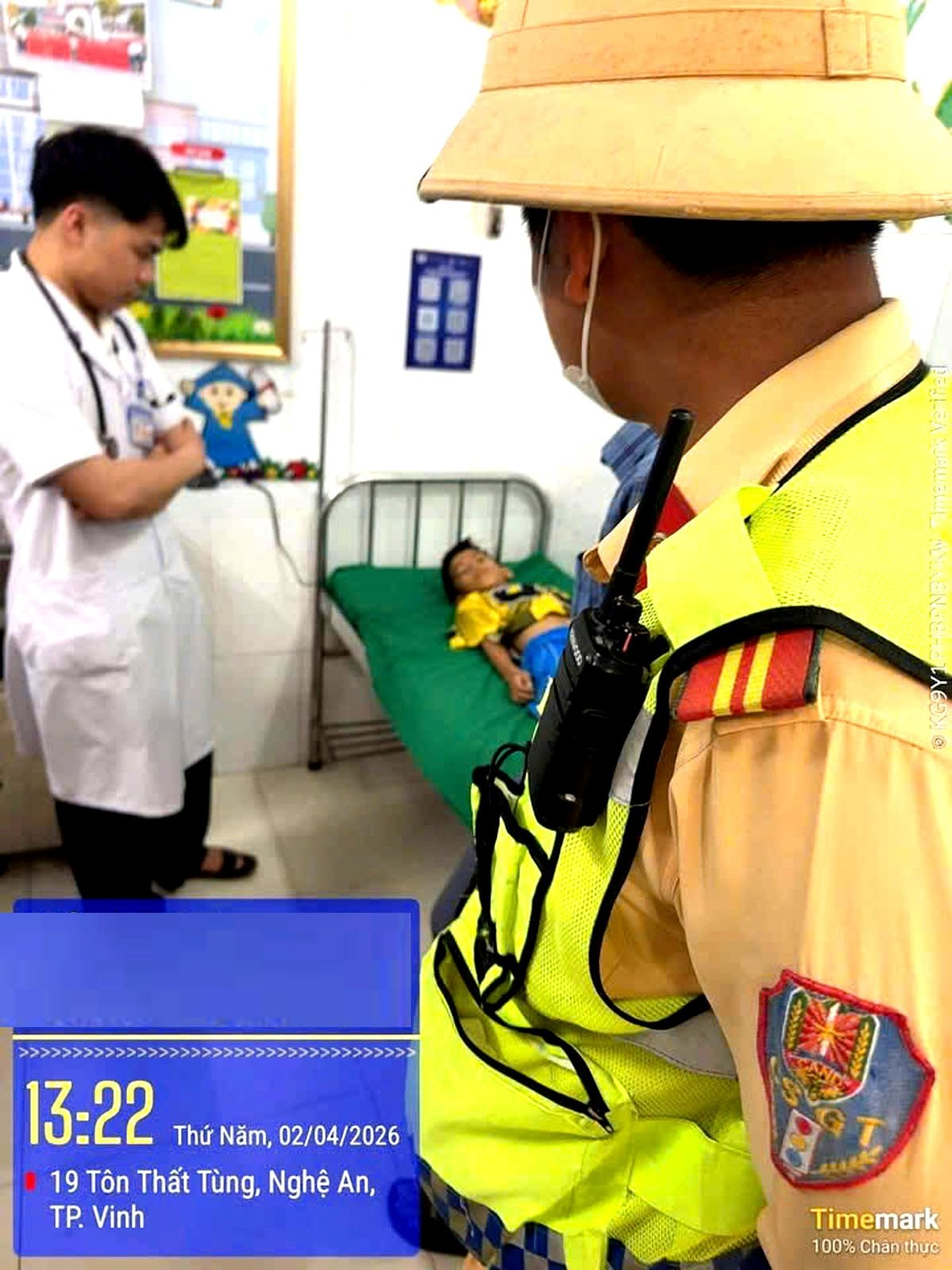 Nhờ được lực lượng CSGT hỗ trợ kịp thời, cháu Khang đã được đưa đến bệnh viện an toàn và bàn giao cho đội ngũ y bác sĩ tiếp nhận, cấp cứu.