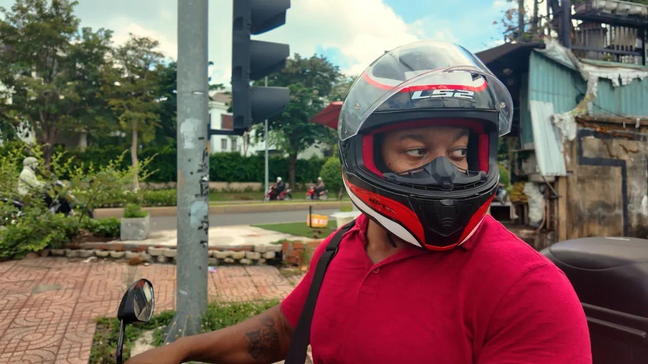 Khi quyết định sống ở Việt Nam, Ryan đã mua một chiếc xe máy để di chuyển |