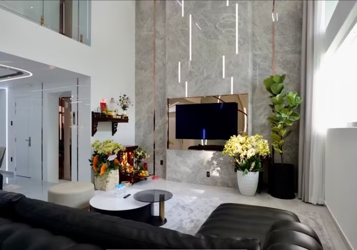 Căn biệt thự này nằm ở ngoại ô TP.HCM, được xây dựng hoàn thiện và dọn vào ở từ đầu năm 2023. Nhà có 4 tầng kèm 1 hầm xe theo lối kiến trúc hiện đại |