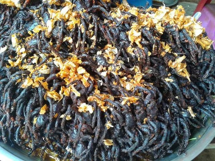 Côn trùng là món ăn không còn xa lạ ở Campuchia nói riêng và các nước châu Á nói chung. Tuy nhiên hiếm có quốc gia nào các món côn trùng lại phổ biến như ở Campuchia. Thoạt nhìn trông có phần đáng sợ nhưng nhện chiên giòn là món khoái khẩu của người dân địa phương và trở thành đặc sản được bày bán rất nhiều tại các khu chợ.