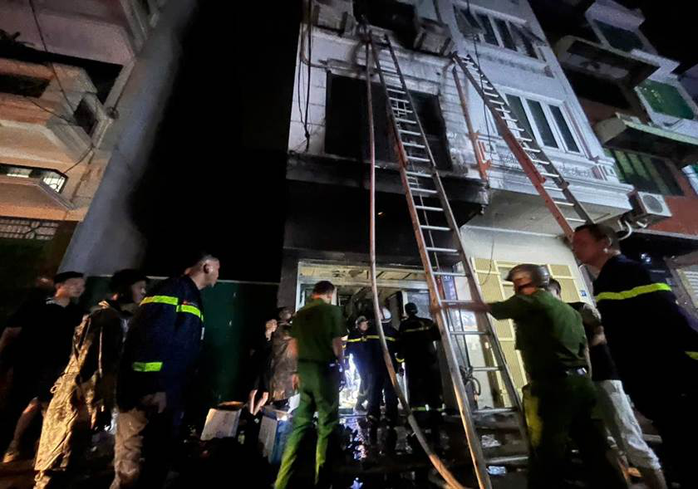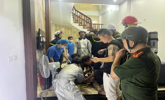 Tại hiện trường, đám cháy ngôi nhà 6 tầng kèm theo khói, khí độc phát triển mạnh tại tầng 1 và có chiều hướng lan lên các tầng phía trên. Qua nắm tình hình, có 2 người tự thoát nạn, còn 5 người mắc kẹt bên trong.