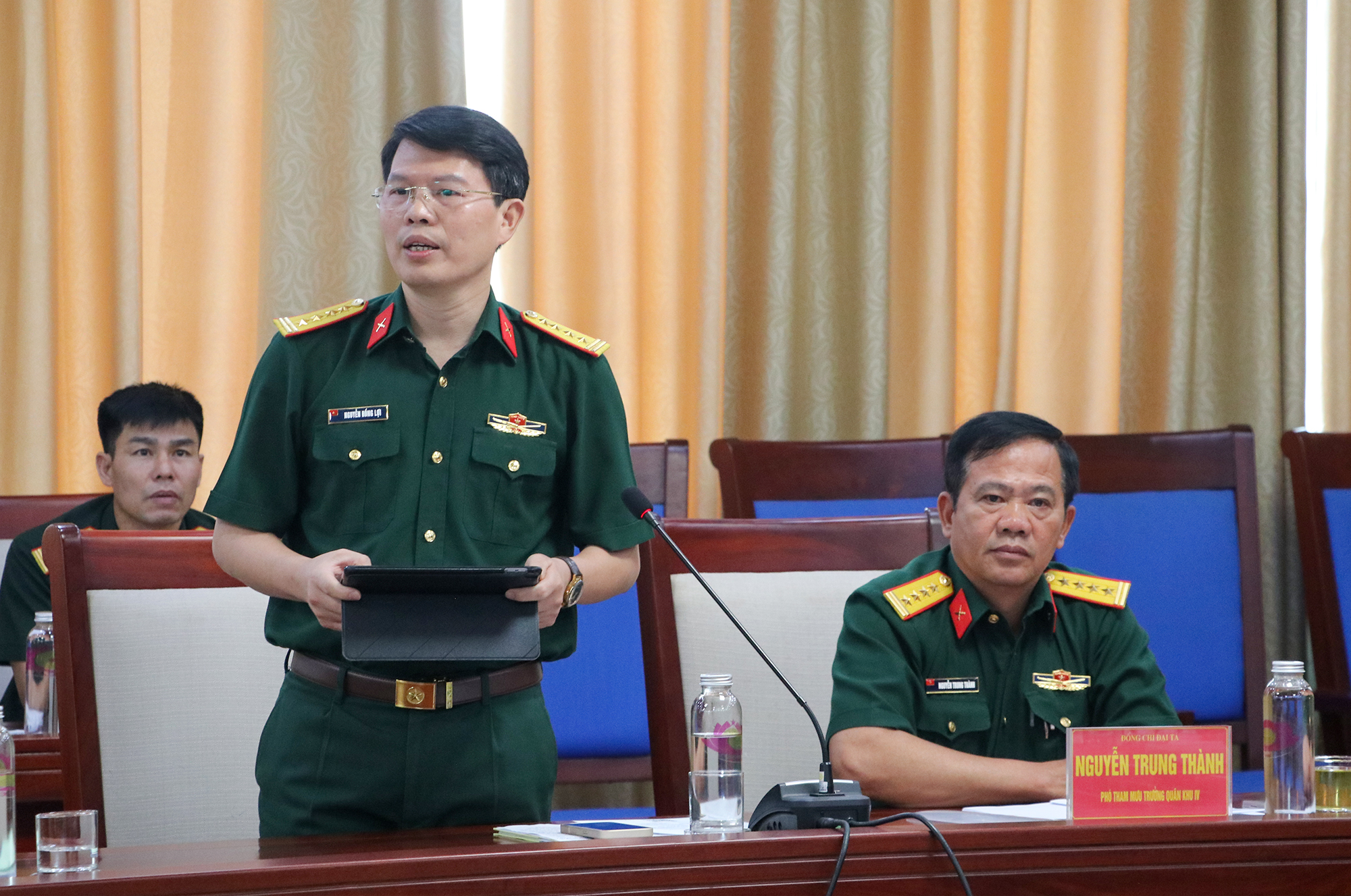 Đại tá Nguyễn Hồng Lợi – Phó Chính ủy Bộ Chỉ huy Quân sự tỉnh tham luận về công tác hỗ trợ khắc phục hậu quả thiên tai |