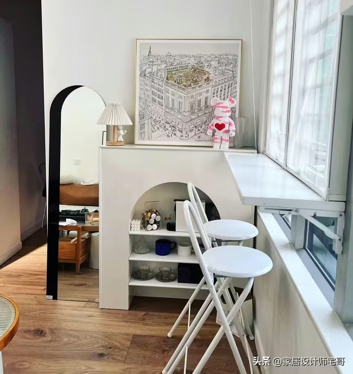 Góc nhỏ cạnh cửa sổ được tận dụng làm quầy bar mini, có thể uống cà phê hoặc đọc sách. Ảnh: Tóutíao |