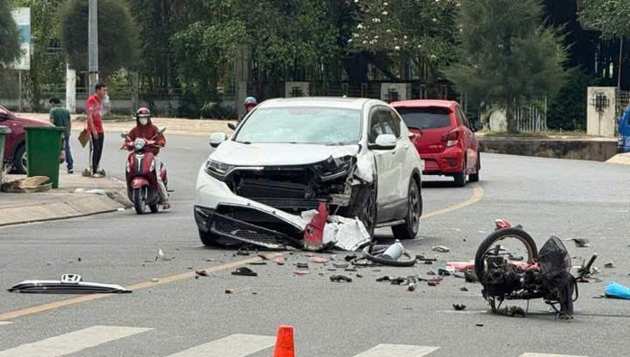 Cú tông mạnh khiến xe máy vỡ nát phần đầu, bánh trước văng ra khỏi xe. Nam thanh niên điều khiển xe máy ngã xuống đường, tử vong tại chỗ.