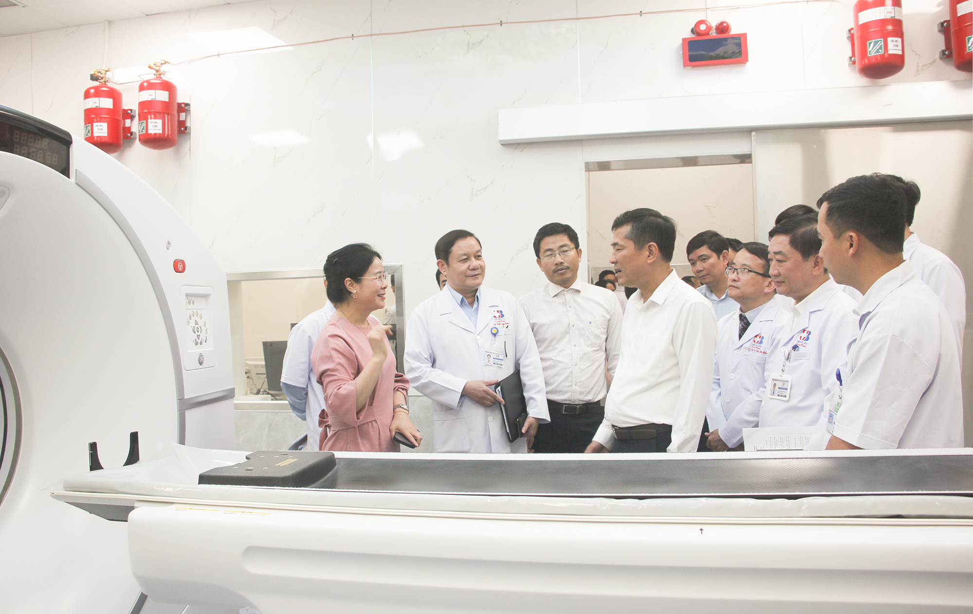 Phó Chủ tịch UBND tỉnh Thái Văn Thành nghe giới thiệu hệ thống máy PET/CT |