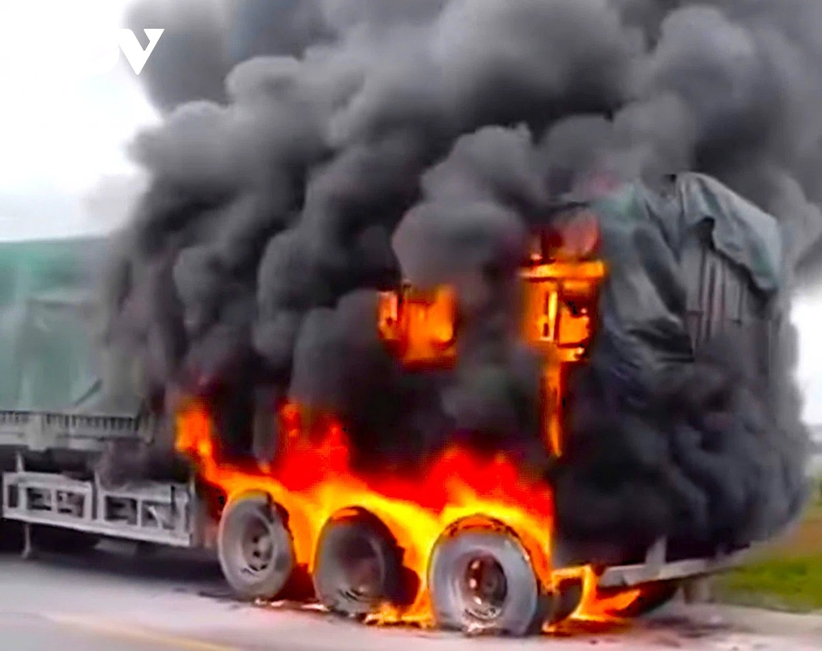 Theo thông tin ban đầu, vụ cháy xảy ra vào khoảng 8h30 cùng ngày. Thời điểm này, chiếc xe đầu kéo mang biển kiểm soát 36H-074.xx đang di chuyển thì bị nổ lốp bất ngờ bốc cháy từ khu vực phía sau rơ-moóc. Ngọn lửa nhanh chóng lan rộng, bao trùm phần sau phương tiện.