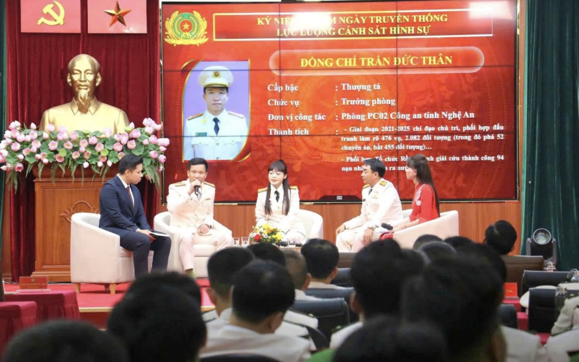 Đồng chí Thượng tá Trần Đức Thân, Trưởng phòng Cảnh sát hình sự (thứ hai từ trái sang) giao lưu tại Lễ tuyên dương điển hình tiêu biểu lực lượng Cảnh sát hình sự “Vì bình yên cuộc sống” do Cục Cảnh sát hình sự - Bộ Công an tổ chức |