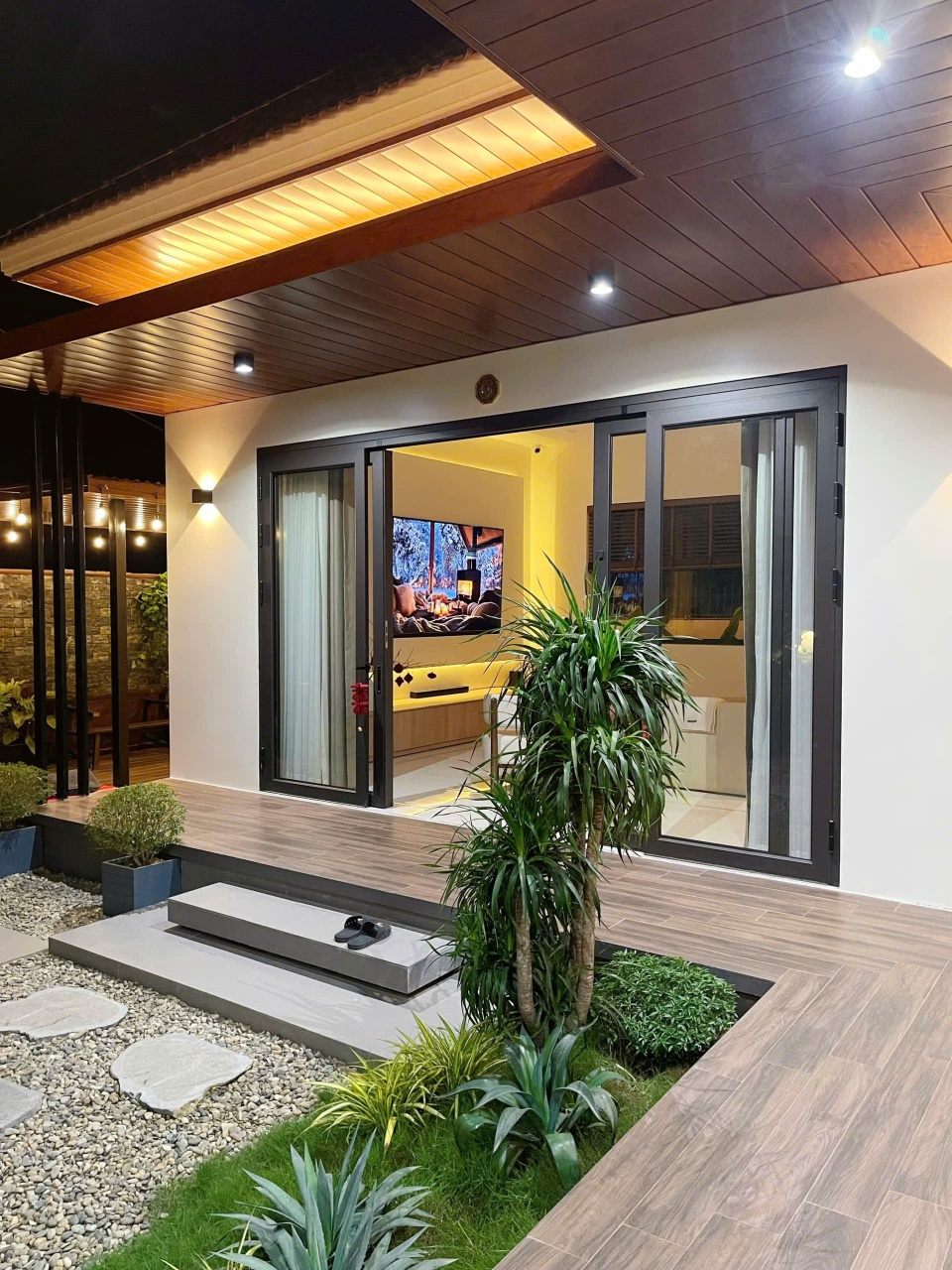 Ngoài ra, với đặc thù nhà có diện tích sân vườn lớn (rộng 300 m2, trong đó 170 m2 xây dựng), anh Nam lựa chọn cách thiết kế đơn giản, ưu tiên tổng thể hài hòa thay vì nhiều chi tiết trang trí phức tạp. Anh cho rằng không gian sân vườn chỉ thực sự có giá trị khi gắn với nhu cầu sử dụng thực tế, tránh trở thành những khu vực “đẹp nhưng ít dùng”.