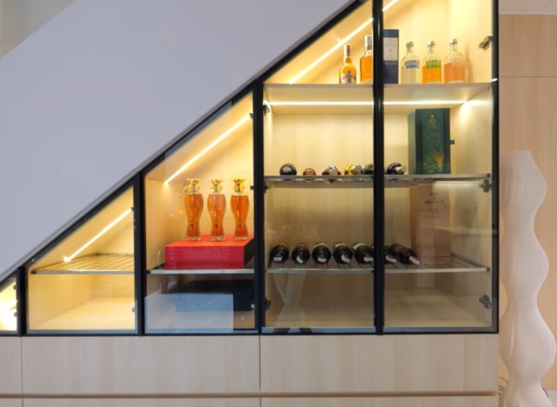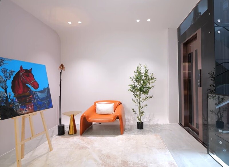 Di chuyển lên tầng hai bằng hệ thống thang máy kính hiện đại sẽ bắt gặp "trung tâm điều hành" đầy cảm hứng của nữ ca sĩ. |