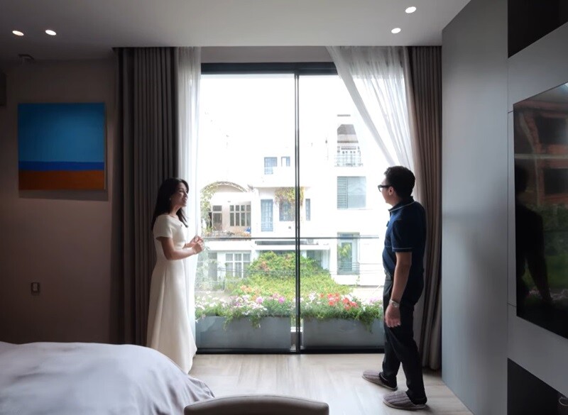 Phòng ngủ của Hà Nhi ngập tràn ánh sáng. Mỗi buổi sáng, cô kéo rèm ra có thể ngắm nhìn khung cảnh bên ngoài. Khi cần riêng tư thì đóng lại. |