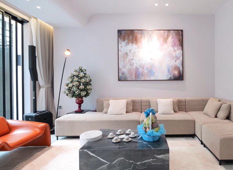 Trái ngược với vẻ ngoài sắc sảo và cá tính mạnh mẽ trên sân khấu, Hà Nhi chọn cho không gian sống phong cách hiện đại pha chút Wabi-sabi với tông màu trung tính như trắng, be, ghi xám. |