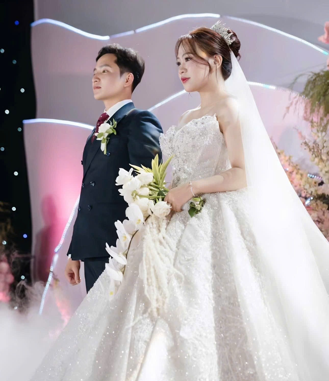 Hình ảnh cô dâu Kim Ngân và chú rể Quyết Chiến. |